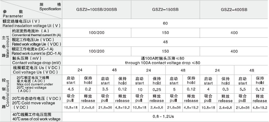 GSZ2-200DB直流接触器适用于蓄电池车辆的启动、停止和电动叉车、牵引车、电信、计算机等领域的电源切换及不间断电源系统。