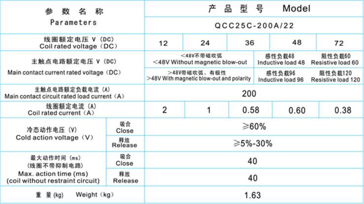型号:QCC25C-200A/22直流接触器