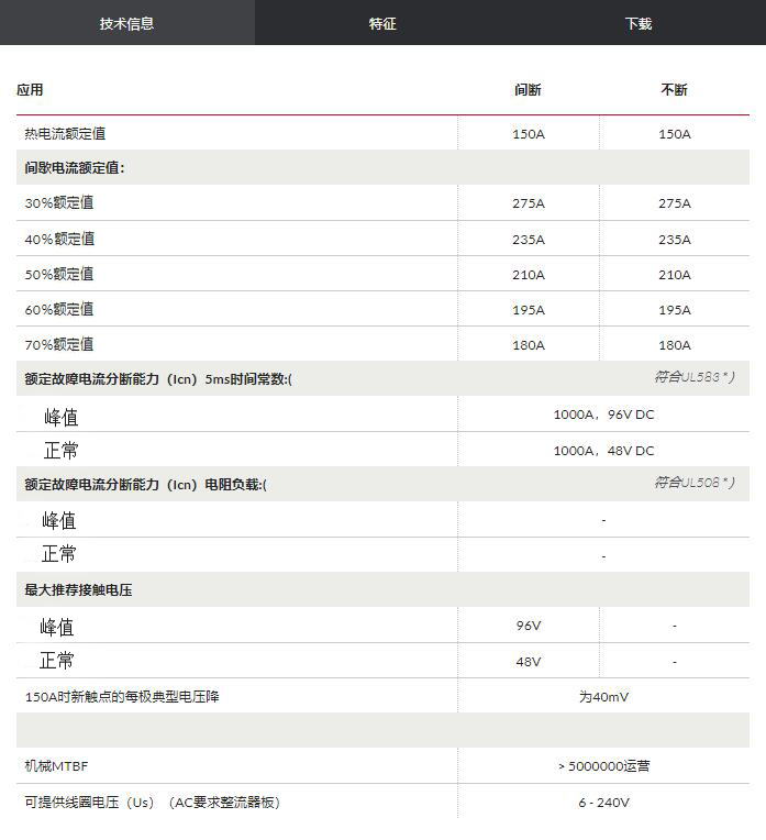 SW185专为直流负载而设计,包括用于电动车辆(如工业卡车)的电机。SW185专为中断和不间断负载而开发,适用于开关电阻,电容和电感负载。